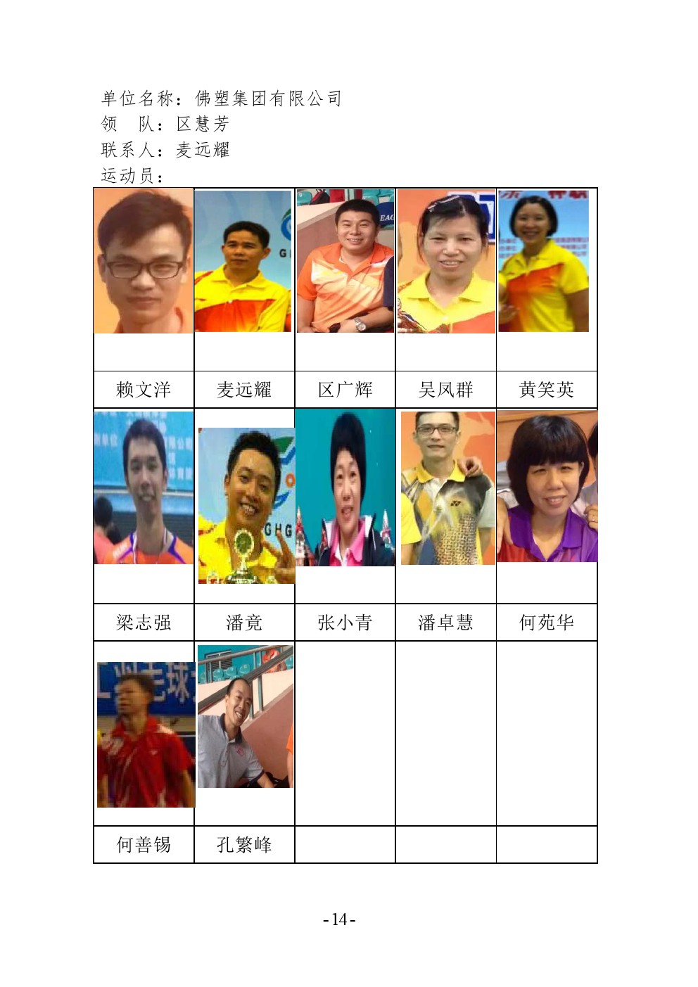 第十四届信息协会羽毛球赛参赛人员名单公示
